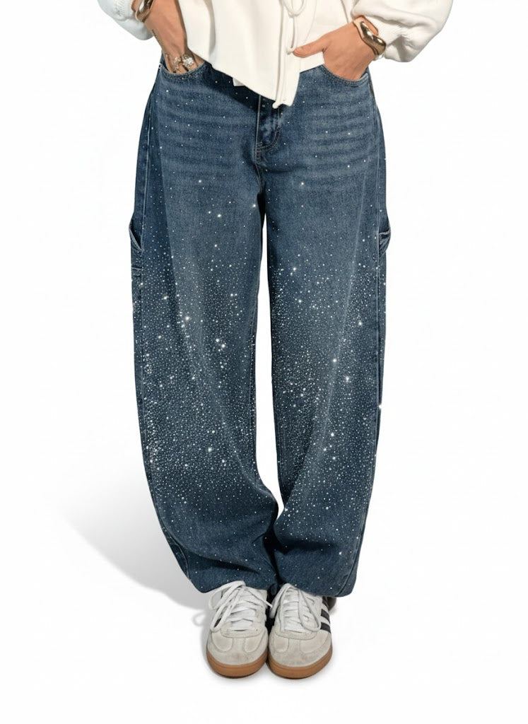 La combinaison de la coupe balloon, des détails carpenter et des touches scintillantes crée un jean qui attire immédiatement le regard et met en valeur votre style personnel.